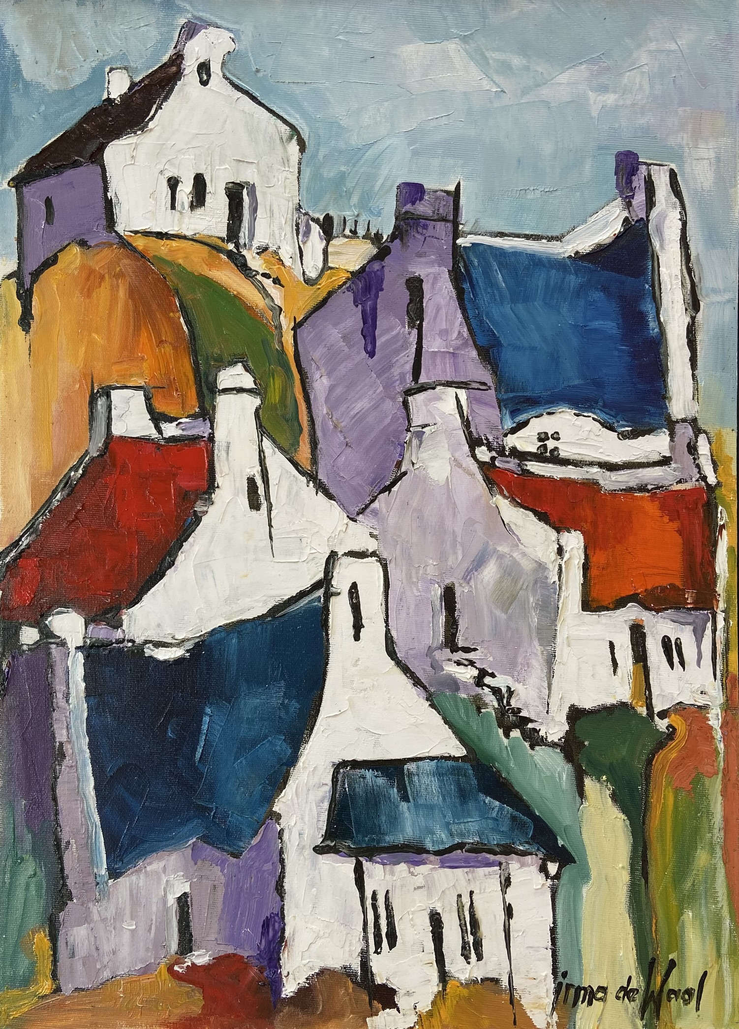 250 350 40mm. Framed with wooden white floating frame. Original oil painting.